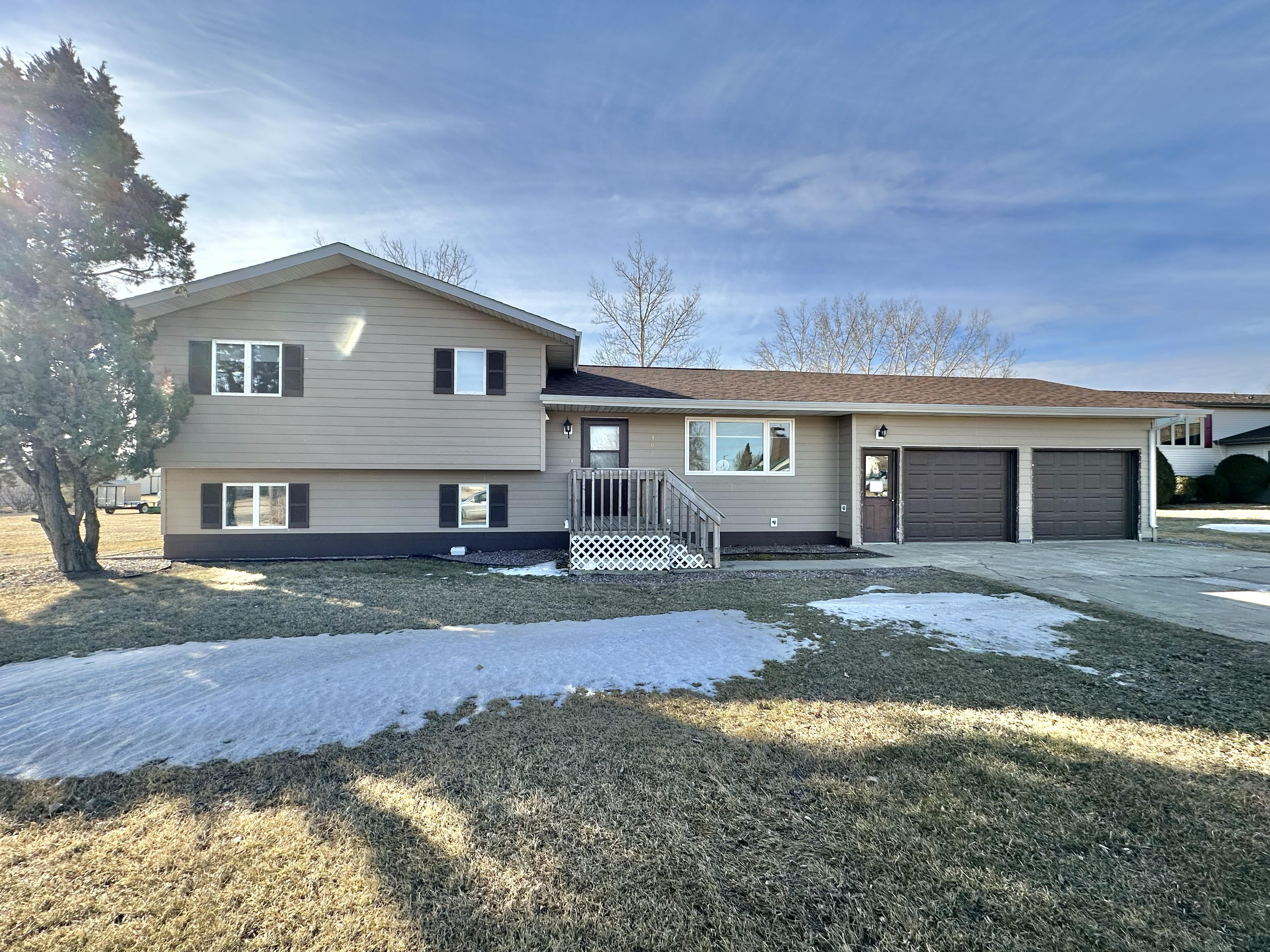 Check out this 1980 multilevel, three bedroom home of approximately 2,300 square feet located near the Jacobson Memorial Hospital, with another non-conforming bedroom on the lower level. The home has a 2-car attached garage and features a newly remodeled kitchen with newer cabinets, countertops, and kitchen appliances, including a dishwasher. Newer flooring runs throughout the kitchen, dining, living, and family room areas. The home has central air and a propane forced-air furnace with a 500-gallon tank included. Located on a larger 85 X 140 lot, offering lots of room to enjoy the outdoors. The back yard includes an 8 X 12 garden shed. Located at 307 4th Ave NE in Elgin, ND, for a price of $159,900. Call Colleen Vetter, Realtor @ 701.220.6585 or Martin Schock, Broker/Realtor @ 701.400.1401 to view this property.